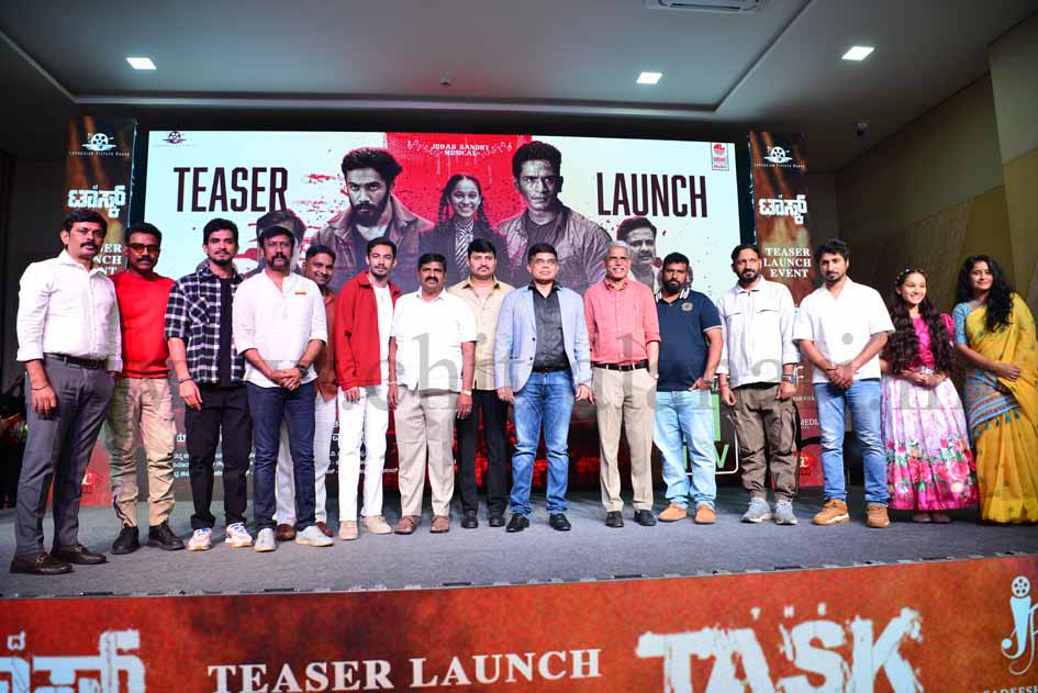 ಬೆಳ್ಳಿತೆರೆ, ಕಿರುತೆರೆಯಲ್ಲಿ ಸಕ್ರಿಯರಾಗಿರುವ ರಾಘು ಶಿವಮೊಗ್ಗ ನಿರ್ದೇಶಿಸಿರುವ ಮೂರನೇ ಸಿನಿಮಾ ದಿ ಟಾಸ್ಕ್ ಬಿಡುಗಡೆ ಹೊಸ್ತಿಲಿನಲ್ಲಿ ನಿಂತಿದೆ. ನವೆಂಬರ್ 21ಕ್ಕೆ ತೆರೆಗೆ ಎಂಟ್ರಿ ಕೊಡಲಿರುವ ಈ ಚಿತ್ರದ ಟೀಸರ್ ಬಿಡುಗಡೆ ಕಾರ್ಯಕ್ರಮ ನಿನ್ನೆ ಜಿಟಿ ಮಾಲ್ನಲ್ಲಿ ಜರುಗಿದೆ. ಕಾರ್ಯಕ್ರಮದಲ್ಲಿ ADGP ಎಂ ಚಂದ್ರಶೇಖರ್, ಲಹರಿ ಸಂಸ್ಥೆಯ ಲಹರಿ ವೇಲು, ವಿಷ್ಣು ಸೇನೆಯ ವೀರಕಪುತ್ರ ಶ್ರೀನಿವಾಸ್ , ನಿರ್ದೇಶಕರಾದ ಪವನ್ ಒಡೆಯರ್, ಸಿಂಪಲ್ ಸುನಿ ಹಾಗೂ ಬಹದ್ದೂರ್ ಚೇತನ್ ಭಾಗಿಯಾಗಿ ಇಡೀ ಚಿತ್ರತಂಡಕ್ಕೆ ಶುಭಾಶಯ ಕೋರಿದರು.