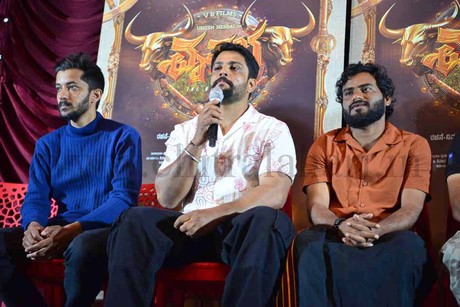 ನಂತರ ವಷಭ ಬಗ್ಗೆ ಮಾತಾಡುತ್ತ ಗೂಳಿ ಥರದ ವ್ಯಕ್ತಿತ್ ಇರೋ ರೈತನೊಬ್ಬನ ಕಥೆ ನಮ್ಮ ಚಿತ್ರದಲ್ಲಿದೆ. ನಾನು ತೋರಿಸ್ತಿರೋ ರೈತನೇ ಬೇರೆ, ಕನ್ನಡ ಶಾಲೆಗಳನ್ನು ಉಳಿಸಲು ಏನು ಪರಿಹಾರವಿದೆ, ಹೀಗೆ ಸಾಕಷ್ಟು ವಿಷಯಗಳನ್ನು ಚಿತ್ರದಲ್ಲಿ ಹೇಳಿದ್ದೇವೆ. ವೃಷಭ ಟೈಟಲ್ ಮೇಲೇ ನಮ್ಮಿಡೀ ಚಿತ್ರ ನಿಂತಿದೆ. ಈಗ ನಂದ ಕಿಶೋರ್ ನಮ್ಮ ಸಂಪರ್ಕಕ್ಕೆ ಸಿಗುತ್ತಿಲ್ಲ ಎಂದು ತಮ್ಮ ಅಳಲನ್ನು ತೋಡಿಕೊಂಡರು. ರೈತ ಎಂದರೆ ಬರೀ ಹೊಲದಲ್ಲಿ ಕೆಲಸ ಮಾಡುವವನಲ್ಲ. ಆತನನ್ನು ಕೆಣಕಿದರೆ ಸುಮ್ಮನಿರಲ್ಲ. ಆತನಿಗೂ ತಾಕತ್ತಿರುತ್ತೆ ಅಂತ ಹೇಳಲು ಹೊರಟಿದ್ದೇವೆ ಎಂದೂ ಮಾಹಿತಿ ನೀಡಿದರು.